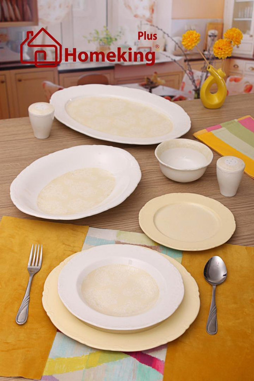 سرویس غذاخوری 28 پارچه چینی هوم کینگ با طراحی زیبا و ظریف، انتخابی ایدهآل برای پذیرایی از مهمانان شما است. این سرویس از جنس چینی باکیفیت ساخته شده است که مقاوم در برابر حرارت و خط و خش است.