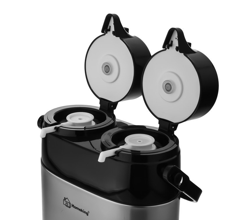 فلاسک دوقلو هوم کینگ کد 3020 ظرفیت 1.3 لیتر با ظرفیتی زیاد و طراحی بسیار مناسب به کسانی که قصد استفاده از آن را دارند، این امکان را میدهد تا به کمک آن از راحتی بیشتری در زمان مسافرت یا کمپ برخوردار شوند. این فلاسک دارای دو محفظه جداگانه برای نگهداری مایعات گرم و سرد است به طوری که هر محفظه ظرفیتی برابر با 1.3 لیتر دارد. عایق این فلاسک از جنس شیشه است که دمای مایعات را به صورت سرد و گرم میتواند در مدت زمانی زیاد به خوبی حفظ کند. همچنین استفاده از شیشه به عنوان عایق در این فلاسک این مزیت را نیز بدان اضافه کرده است که در صورت قرار دادن مایعاتی نظیر چای داخل فلاسک، رنگ آنها تغییر نکرده تا شما از نوشیدن چای داغ و خوش رنگ لذت ببرید. این فلاسک همچنین از طرح و رنگی بسیار زیبا بهره میبرد و استفاده از استیل بسیار مرغوب در رویه این فاسک به شما کمک خواهد کرد تا در مدت زمانی زیاد و به راحتی از آن استفاده کنید. فلاسک که در تصویر مشاهده میکنید با ابعاد و وزنی مناسب، به شما این امکان را میدهد تا راحتی بیشتری در حمل آن در زمان مسافرت و یا کمپ داشته باشید. شما میتوانید با قفل کردن خروجی آب در این فلاسک از احتمال نشتی مایعات داخل به بیرون جلوگیری کنید.
