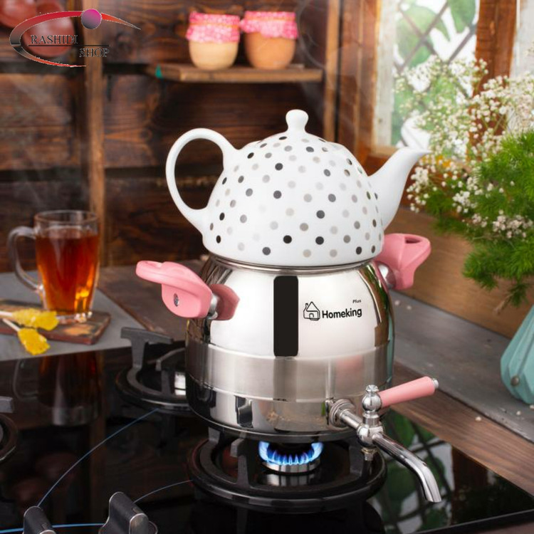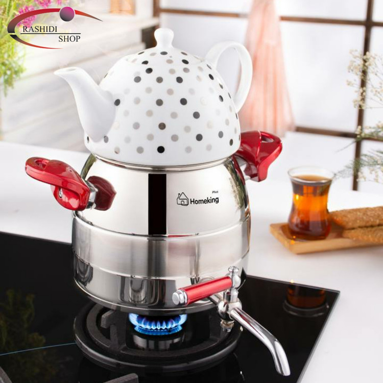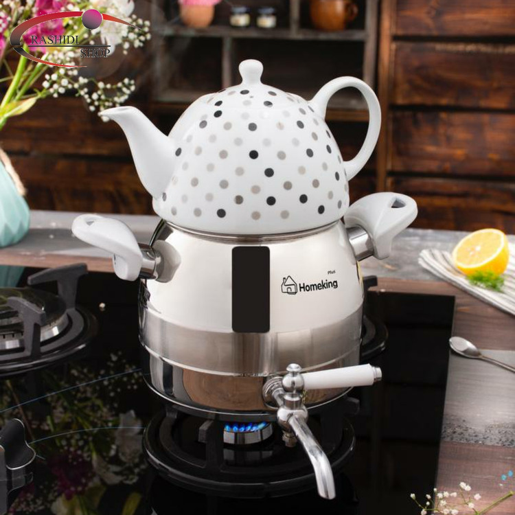 کتری قوری شیردار استیل ۳ لیتر هوم کینگ ( کف چدن و دسته باکالیت)