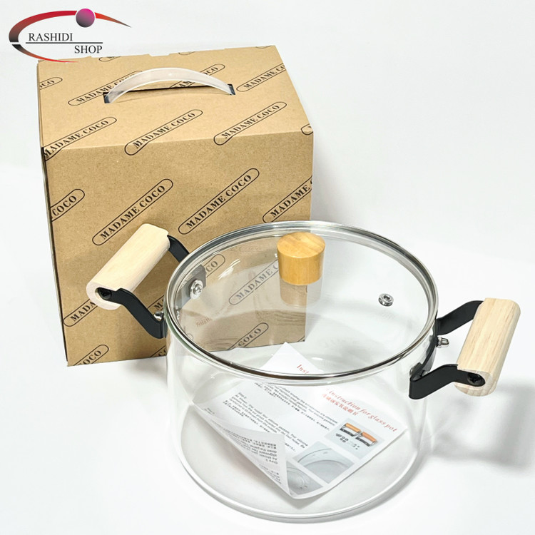قابلمه پیرکس دسته چوبی از برند لوکس مادام کوکو، ترکیبی از زیبایی و کارایی در آشپزخانه شماست. این قابلمه با بدنه شفاف پیرکس مقاوم در برابر حرارت مستقیم و طراحی ظریف اروپایی، برای پخت سالم و حرفهای ایدهآل است. دستههای چوبی خوشدست، جلوهای گرم و طبیعی به آشپزخانه میدهند. در سه ظرفیت ۲.۵، ۳.۵ و ۴.۵ لیتری عرضه میشود و با بستهبندی شکیل، انتخابی بینقص برای هدیه نیز هست.