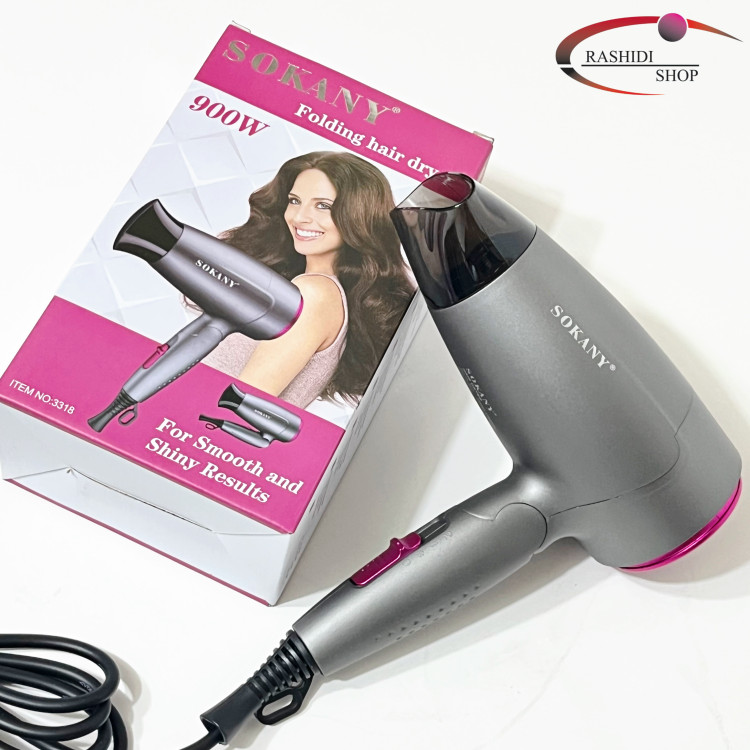 سشوار تاشو سوکانی SOKANY 3318 دو سرعته سرد و گرم / ۹۰۰ وات / فناوری یون منفی و گرمای مادون قرمز